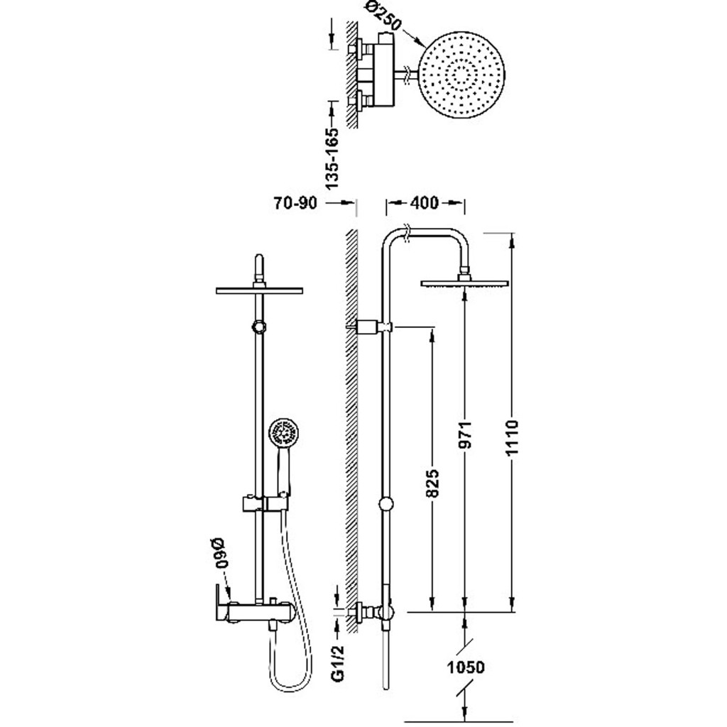 Conjunto de ducha con rociador orientable. Soporte deslizante y orientable para ducha de mano